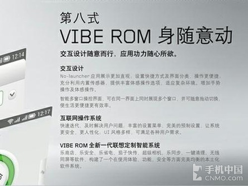 联想VIBE Z还搭载了一颗主频为2.2GHz的骁龙800四核处理器,辅以2GB RAM(运行内存),整机运行速度极为流畅。系统方面,该机采用基于Android 4.2深度定制的VIBE ROM系统,不但拥有丰富的应用软件,而且用户界面也十分华丽。