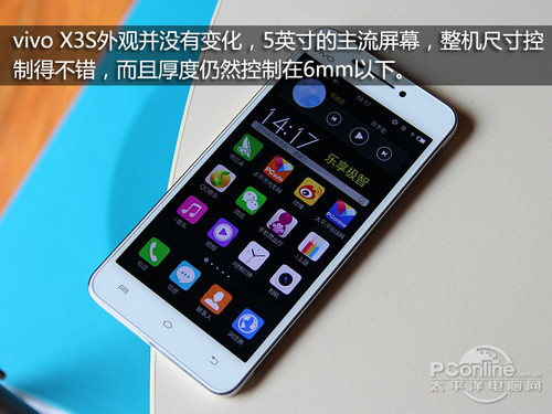 vivo X3s的屏幕可视面积为5.0英寸,分辨率符合720P高清标准,屏幕材质为时下流行的IPS,采用OGS全贴合技术。无论是色彩还原还是可视角度,vivo X3s的表现都相当优秀,在室外光照强烈的环境下依然能让人看清屏幕显示的内容。