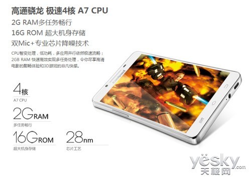 酷派大神1s配置目前智能手机中最大屏幕——7.0英寸超FHD黑钻屏(像素密度1920x1200,323PPI超视网膜)。配合Mali450-MP4 GPU提供的逼真画面显示能力以及2GB高速RAM提供的超强处理能力,也将为用户带来前所未有的游戏试听体验。