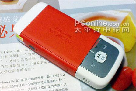 诺基亚 5700 XpressMusic外观应该称为“朴素大方”,除了按键外,其它部位全部是清一色的黑色。最吸引人的依旧是屏幕两端创新式的键盘设计,不过不再是音乐操控按键,而是设计了菜单进入和删除键。再仔细观察,会发现,该机和3250相同,屏幕和键盘中间是可以进行360度旋转的,正面是手机键盘,旋转过来就是音乐操控键。手机、MP3随时变身。5700三围108.2×50.5×17.3mm,重量115g,大小比较中规中矩,男女均可轻松掌握。