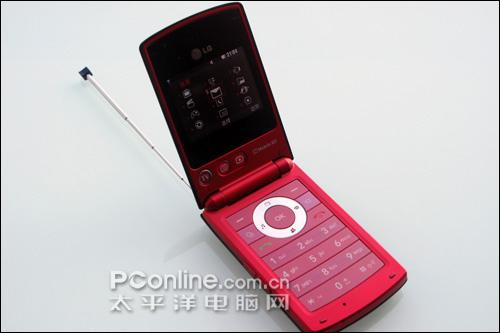 打开LG HB620T的翻盖,LG HB620T为了方便电视的播放而采用了横屏的显示,宽大的按键手感也非常的不错,操控起来感觉很好,同时位于屏幕下方的电视功能快捷键很是方便。