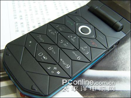 打开翻盖,键盘同样也是菱形线条设计,虽然按键并不是我们常见的方形,不过在实际使用时按错的概率并不是很大。在键盘手感方面7070的按键键程较短,稍稍有些偏硬。做工方面,这款7070则给了我们很大的惊喜,在诺基亚中是少有的精良。