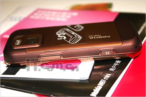 诺基亚N97 mini的机身正面设计与N97相似度达到了90%,略有不同的是N97 mini将原作位于屏幕右侧的“Nokia”标志以及N97字样挪至屏幕顶端,而屏幕下方的菜单按键则有原作的金属材质换为镂空设计,可以看到淡淡的白色灯光。