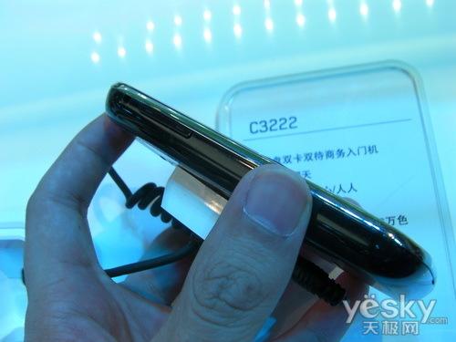 三星C3222内置130W像素摄像头,支持3.5mm耳机、microSD卡、FM收音、蓝牙等功能,工作在GSM/GPRS 850/900/1800/1900 MHz网络下,手机功能以通信为主,同时对于流行的社交网络功能也有不错的支持,预置了一些国内流行的网络应用。