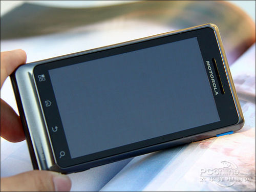 摩托罗拉ME722采用银黑色金属镶边,同样是采用分辨率为480x854像素(FWVGA)的3.7寸电容触控屏,不过延长屏幕覆盖了全键盘,失去了非对称的个性张扬,却多了几分科技感。推开后可以发现摩托罗拉ME722的全键盘去掉了方向导航键,增加了每个按键的面积,提升总体手感。