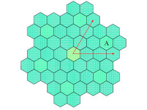 在数学计算中有这样一个结论,即以相同半径的圆形覆盖平面, 当圆心处于正六边形网格的各正六边形中心时,所用圆的数量最少。所以基站覆盖范围是呈六边形分布的,每个六边形的中心设有一个基站,这样最节约资源。由于 形成的网络覆盖在一起,形状酷似蜂窝,因此被称作蜂窝网络。
