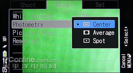 SO905iCS提供三种测光模式,分别是中央重点、平均测光和点测光。通过一段时间使用,SO905iCS的中央重点测光准确度也比较高,而平均测光在拍摄风景时会有较好的表现。而点测光则适合拍摄强烈逆光的环境或者人像拍摄。