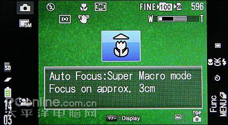 SO905iCS的超级微距模式,最近对焦距离更是只有3cm。而且当开启超级微距模式时,镜头会变焦到较长的焦段,从而获得更大的图像。