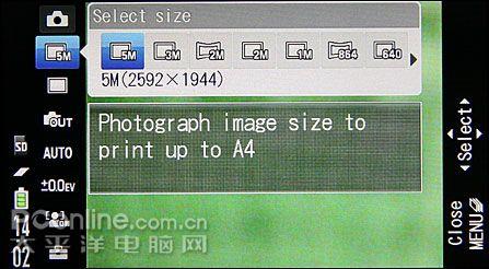 我们挑选了几项具有特色的菜单选项,上图是SO905iCS的分辨率选项,最高可拍摄500万像素(2592×1944像素)的图片,并有多种分辨率可选。