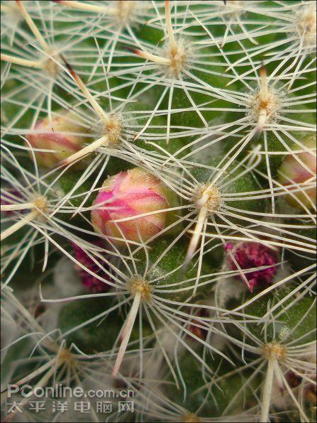 上图是超级微距模式拍摄的,可见超级微距模式确实比一般微距要强大得多。从画质来看,仙人掌的纹理细节、刺针的细节都清晰呈现。