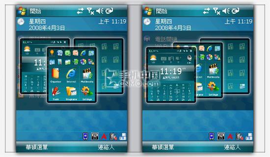 笔者也在P550手机中安装了Spb菜单,由于拥有3.5英寸超大液晶触摸屏,因此是用手指进行触摸操作非常方便,3D切换速度非常快,点击图标等操作使用手指就可以完成。这不由得令笔者想起早些年的经典PPC手机多普达696,当然无论是性能还是外观,696与华硕P550都不可同日而语,下面我们继续进行其他方面的介绍。