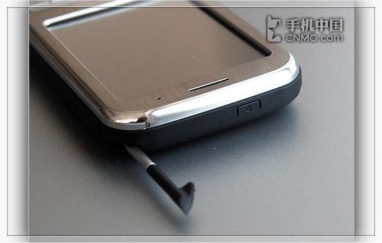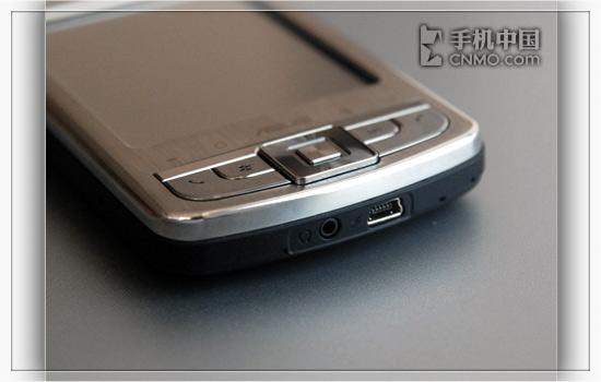 手机顶部有一个电源键和手写笔插槽,手写笔的长短粗细都恰到好处。底部提供了2.5毫米标准耳机接口和我们熟悉的miniUSB数据接口。另外手机背面是一个200万像素摄像头以及旁边的扬声器。背面摄像头和扬声器的样式比较难看,有种山寨机的感觉。