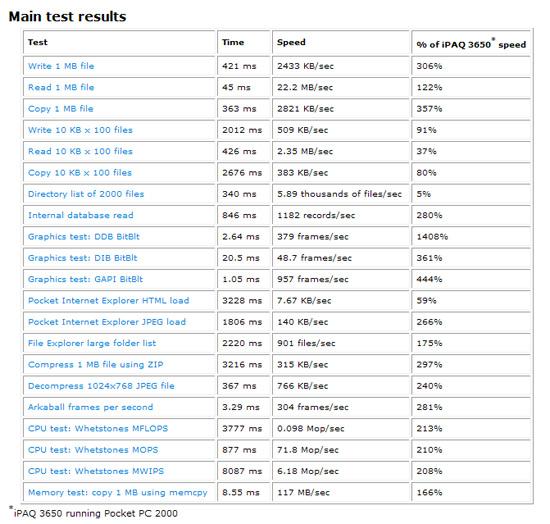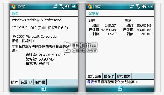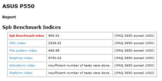 华硕P550的硬件配置可以用强悍来形容,它采用了主频为520MHz的PXA270处理器,数据运算能力超强,手机的快速反应也得益于这一颗高速奔跑的“芯”。然而鱼与熊掌华硕没有让我们兼得,内存配置为64MB RAM和256MB ROM,虽说在一般使用上64MB的程序运行内存已经足够应付,但是在上网的时候内存略小体现明显,网页会打开略慢。下面是笔者使用一些相关测试软件对P550的测试数据,仅供参考。