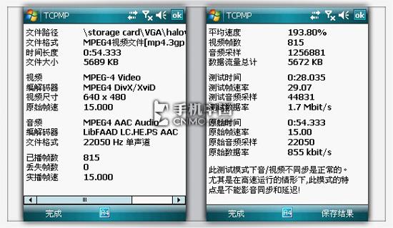 多媒体功能也是智能手机的重要应用范畴,华硕P550凭借强大的CPU性能和3.5英寸屏幕(虽然只有QVGA的分辨率),如果不看视频,那真的是暴殄天物。笔者安装了流行的TCPMP播放器,经过QVGA和VGA两个尺寸的视频播放测试,发现P550完全可以胜任,画面流畅、声音与画面衔接正常,用来当作MP4播放器是不错的选择。