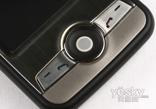 屏幕下方的导航按键借鉴了多普达P800流行开来的“轨迹球”概念,通过圆形的动球来控制方向;左右两侧则是通话,挂机按键以及相对应屏幕下方菜单的功能按键,简洁的布局带给人舒适的感受。