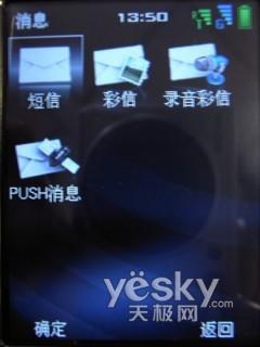 U980的信息菜单分为了短信,彩信,录音彩信以及PUSH信息四部分(待机界面的快捷菜单指向短消息)。短信息方面,U980具备着1000条文字信息的存储能力,并且会在信息之前注明“T”,“G”字样用以区分信息的来源卡,并且延续了之前名片的检索方式。文字录入方面,U980采用了手写+虚拟触摸按键的设计,而且在拼音输入的时候,会自动屏蔽下个音节不会出现的字母,减少了用户的误操作几率;不过最适合U980的输入方式还是手写。