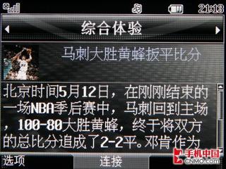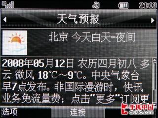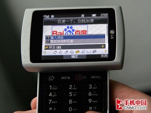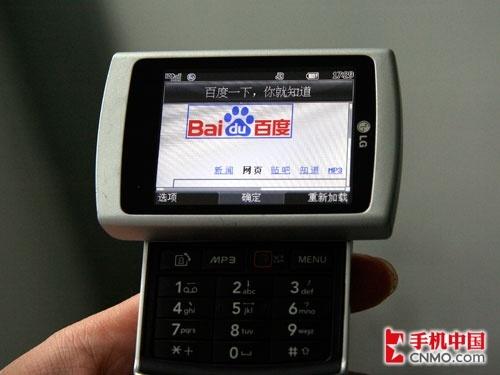 大约5秒钟后百度首页就被完全打开了,看来登陆WEB页面,文本和图片显示速度确实要比以往稍快,经过测试这款KD876手机的网络连接速度还是非常不错的。
