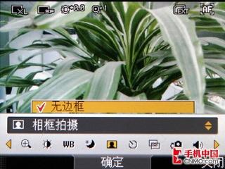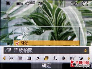 LG KD876手机的拍照系统设置非常的全面,不过遗憾的是并没有配备氙气闪光灯,而是配备了一个LED补光灯,做为一款定位高端的TD手机实在有点寒酸。这款手机支持最大拍照分辨率为2048×1528像素,视频分辨率为320×240像素。在拍照软件上支持五种分辨率大小选择、三种画面质量选择、白平衡、定时拍摄、连拍、镜像模式和亮度调整,此外还可以进行相框拍摄。