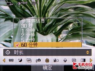 接下来我们看下KD876手机的视频拍摄能力,同样基于300万像素的镜头,但是KD876的视频拍摄能力却有些令人失望,最高只支持320×240像素,而且拍摄时长最长只能选择60分钟,不支持现在主流的视存储卡容量大小进行超长拍摄的功能;剩下的设置也没有什么太令人激动的新选项,一切都很平常。