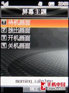 KD876手机的设置选项中有显示设置功能,允许用户自定义屏幕的主题。但是它所指的主题,只包括待机画面、拨出画面、开机画面和关机画面。另外,前文中提到的修改拨号字体的选项也在这里。