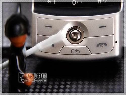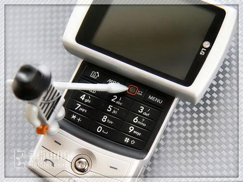 LG KD876手机屏幕下方设置有外键盘,该键盘由左/右软键、通话/挂机键、返回键、五维摇杆组成,摇杆灵敏度很高,定位准确。