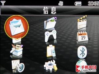 由于KD876手机的屏幕可以旋转,所以它就有两种状态的界面,一种为横屏模式,另一种则为竖屏模式。但是笔者实际使用时发现,这款手机在主菜单模式下,存在明显的系统延时,没选择下个菜单图标都要等上一会儿。