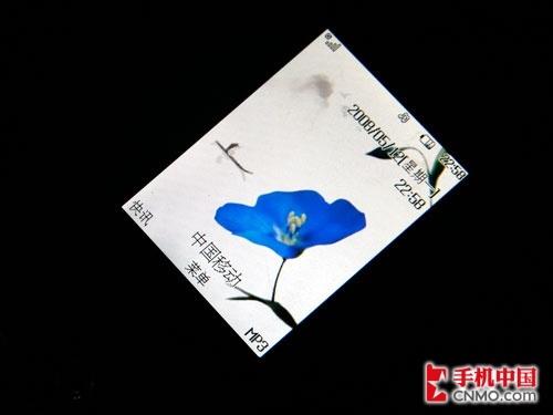 LG KD876手机的屏幕支持90度旋转,与日系夏普920SH手机类似,旋转后视野更加宽广。屏幕尺寸为2.4英寸,26万色、240x320 QVGA分辨率,显示效果清晰、自然,色彩表现力也令笔者感到满意。