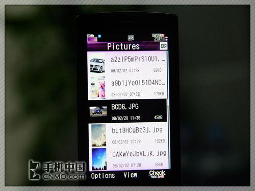 夏普920SH手机提供了三种文件夹浏览模式,这里我用图片浏览来举例说明。这三种模式分别是Inline View、Grid View、Preview View。