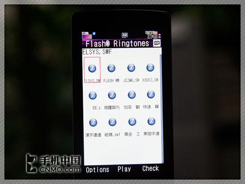 夏普920SH手机支持Flash功能,可以直接播放SWF为后缀名的文件。SWF文件可以是Flash小游戏或者铃声,也可以是动态待机壁纸。
