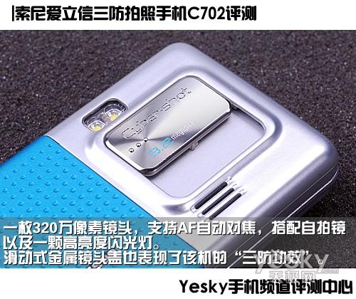 将索尼在数码相机领域的强势品牌Cyber-shot™成功引入移动娱乐市场的索尼爱立信宣布,旗下结合了Cyber-shot™丰富的移动影像技术和前瞻性功能应用的C702c(参数 报价 图片 文章 热评)在国内正式上市,这款C系列手机的首部产品,除了继承领先的拍照品质外,还创新地引入了GPS定位导航、“图像地理信息标签”,“人脸检测对焦”、以及防尘、防水溅(IP54标准)和防滑等功能,将带给消费者一种完全颠覆传统的户外拍照新时尚。