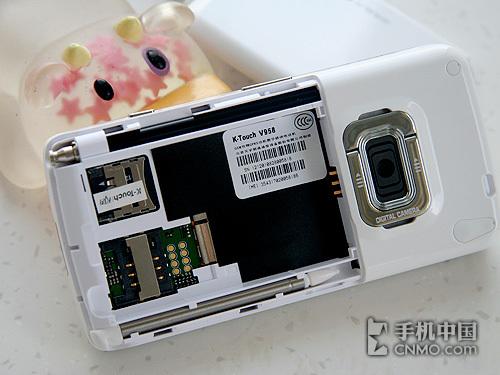 天语V958的背面设计很容易让人联想到N96,摄像头下方的可折叠支架同样可以起到支撑手机的作用,在打开支架抽出天线后V958俨然就是一款“小电视”。
