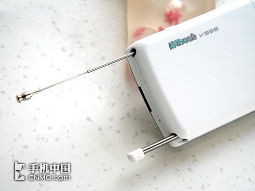 V958的天线藏在了手机的右下角,此天线为四节式折叠设计,但长度并不像V918一样夸张,全面放开后也只有十多厘米而已。