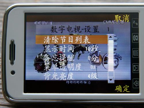 进入设置选项后,用户还可以调节菜单图标的透明度,设置屏幕显示亮度,设置菜单默认显示时间,开关静音模式。不过遗憾的是,V958并没有内置视频录制功能,电视节目只能和用户匆匆而过。