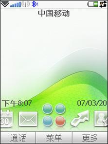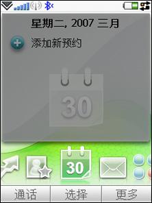 之前索尼爱立信M600、P1c等机型在待机画面都有“今日”的显示条,同时下方有弹出式的快捷方式菜单,G900c则去掉了“今日”,取而代之的是左右拨动式的快捷功能,“今日”的日历、信息等功能,都移到了下方。除了依靠按键选择,还可以用手指在屏幕左右滑动选择,还伴随着“滑动”的过场效果,这和HTC的Diamond很相似哦!