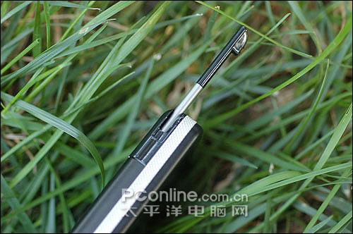 手写笔在机身的顶部,拔出来的地方有一个凹位,很顺手!索尼爱立信似乎不喜欢伸缩式的设计,大部分的手写笔都不能伸缩,所以有偏短的问题,这次的G900c也不例外,基本只能用拇指和食指来“拿”着。