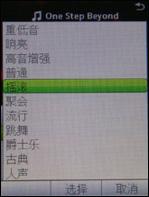 这部手机支持均衡器,多达10种选择,不过和索尼爱立信的普通机型有所不同,G900c所以音效都不能自定义。另外,“睡眠”是一个定时关闭的功能,G900c播放的时间达到我们设定的值,就会自动关闭,可以防止我们睡着了没有关掉音乐,消耗大量电量,同时也保护我们的听力。