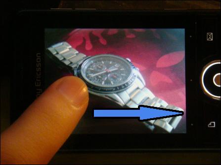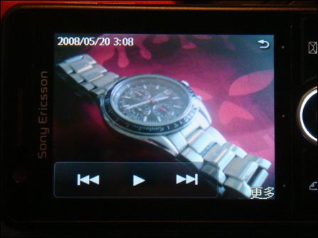 拍完照片,进入播放模式,可以看到半透明的按键,除此之外,G900c还可以通过手指左右滑动来翻页,这个功能在很多手机上已经出现了,不过遗憾的是,索尼爱立信G900c的灵敏度实在是低得可怜,滑动3次,一般只有1次成功,实用性太弱了。