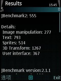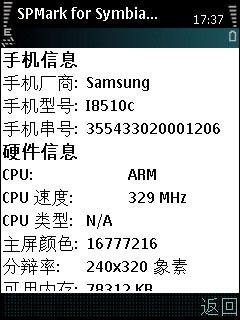 除了配置之外,网友比较关心还是最直接的性能体现。我们为三星i8510安装了一些常规的测试软件,从安装的情况来看,兼容性方面是没有问题的,网友们也不必担忧这个问题。但是在软件的启动方面i8510给的感觉就是比较慢,而且JAVA测试的结果也是比较让人失望,具体的结果如下图。