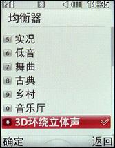 均衡器多达10种选择,其中包括“3D环绕立体声”,这方面还是挺丰富的,另外播放界面的视觉效果,有两种选择,一种是音频柱,另一种是水波纹。KF300e支持后台播放(最小化),在待机画面以及外屏会显示歌曲播放信息,能够满足用户一般的娱乐需要。