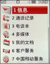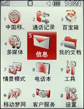 菜单的显示,KF300e除了支持图标模式,还可以设成列表模式。值得一提的是,KF300e不管使用哪种菜单模式,进入系统二级目录的时候,和三星部分机型一样,通过左、右两个导航键,可以进行一级菜单的切换,例如进入“信息”,向左就可以切换到“多媒体”!而且左右切换的时候,伴随有流畅的动态切换效果,整体的操作感觉不错。