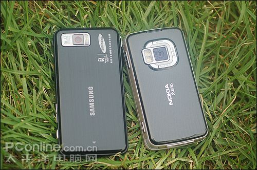 这两款手机的机身背部也大有文章,三星i908的背部采用了拉丝面板的设计风格,而诺基亚则采用了抛光面板的设计风格。在小编看来,三星i908的拉丝面板设计,质感来的更加强烈低调,而且最大的好处是不容易留下指纹与污垢;而诺基亚的抛光面板设计虽然更加时尚张扬,但在机身清洁度上的缺点也同样暴露无疑,需要耗费大量时间来保持面板的干净与整洁。从小编的角度来说更偏向于三星i908的拉丝面板设计(视个人审美观念而定)。