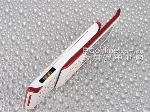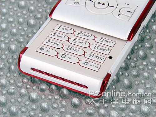 索爱W595的滑盖是我们熟悉的半自动滑盖,推动的时候感觉比较流畅,手感不错,也不会有W580那种松动的感觉。滑开滑盖,我们发现数字按键的设计摆脱了索爱手机原来方方正正的呆板,每个类似于笔形的按键还镶上了红色的边框,非常地漂亮,但是这些按键的手感就不敢恭维了,这些数字键的键程较短,手感比较生涩,对于短信一族来说会比较痛苦。