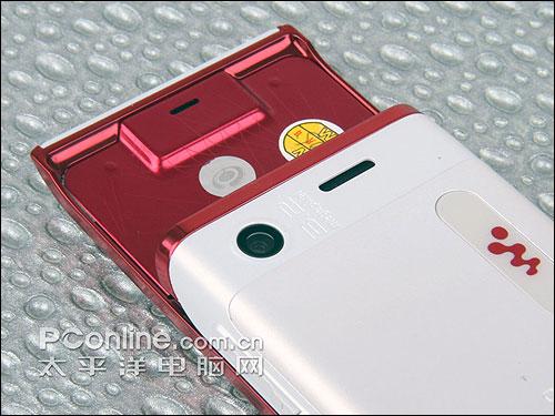 索尼爱立信W595的背部设计非常的简洁,只有索爱标志的小绿球和SonyEricsson和W标志,在机身的下面设计了吊绳孔,比较奇怪的是索爱最近的手机都是这么设计吊绳孔的,如果你挂上吊绳的话放在桌上会凸出一块,机身上方是W595的320万像素的摄像头,没有自动对焦功能,自拍镜和闪光灯也都一一缺失,可以说仍然维持了索尼爱立信手机分类过细的“优良传统”,不过比起W580的200万像素,还是有一定的进步的。在滑盖的上端,我们可以看到几何线条,也是比较时尚的。