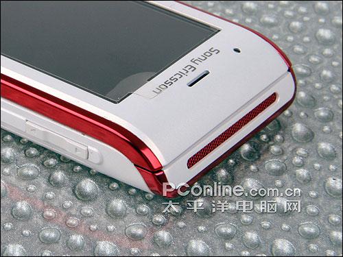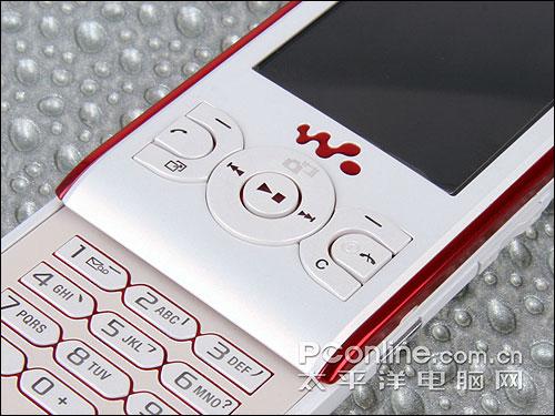 索尼爱立信W595采用了和原作W580不一样的设计风格,与W580的圆润小巧不同,W595采用了更“直接”的设计,直线的线条在边缘经过了“切割”,让人觉得更加大方漂亮,也适合更多的人群使用。在白色的机身周围配上亮红色,让我们想起了一些SONY的MP3的颜色搭配,不过这圈看似金属材质的红色边框其实也是塑料材质的。