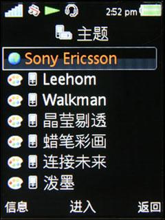 索尼爱立信W595采用了索爱A200的平台,提供了多级亮度调节,开机画面设定和屏幕保护设置和铃声调节等常规的设置,随机提供了6种主题选择,除了我们常见的“Walkman”“晶莹剔透”“连接未来”“蜡笔彩画”这几种常见的主题之外,还有王力宏的主题和“泼墨”的主题,王力宏的粉丝应该会非常喜欢,而“泼墨”的主题,笔者原来以为是中国风格的东西,设置了之后才发现,更像是西方的随意涂鸦。