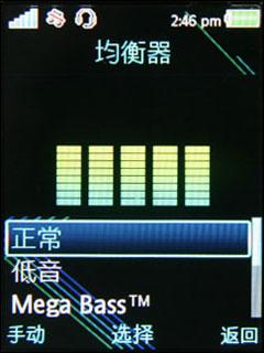 在音乐手机的均衡器的设置上,W595没有如W980这样的旗舰手机有着超过10个的均衡器设置,仅有“正常”,“低音”“Mega Bass”“语音”“高音增强”“手动设置”这几种而已,但是满足一般的要求还是绰绰有余的,不过这个均衡器要在插上耳机的时候才能调节,而且我们并没有拿到原配耳机,所以音质好坏只能以后再评价了。