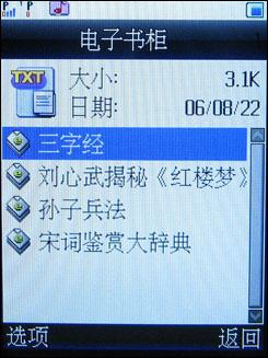 这次D200内置了多款好玩的游戏,无聊的时候打发一下时间是很不错的嘛...支持蓝牙,然后还支持txt格式的电子书,还可以自己调节字体字形等,真的很好很强大!打开的速度也可以接受。要知道,D200不是智能机,也不支持JAVA哦。