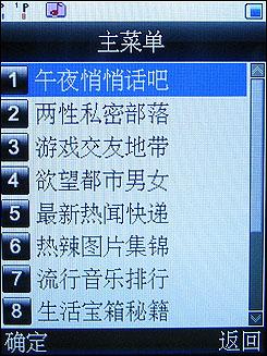 怎么样?是不是充满诱惑呢?吸取以前的经验,这些诱惑选项一般是需要定制服务的,或者需要上网,如果真想试试,那要付出代价的哦。说到这些,我想大家都应该发现了,现在的国产手机,包括山寨手机,里面都有定制了类似以上的诱惑功能,其实这是一些增值服务,大家要慎用咯...