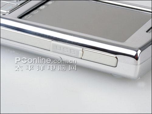 说到右边的这个USB插口,这么华丽和谐的外观设计中,这个软胶盖算是一个小败笔,做工粗糙了一点。打开来一看,还不是标准的USB接口,而是专用接口,难免让人有些失望。