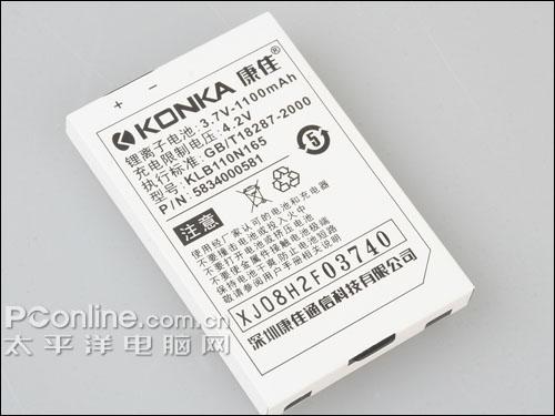 对于一款既不是智能手机也不支持JAVA的普通手机来说,配个几百毫安的电池大家也无可厚非,康佳算是比较厚道,配送2块高达1100毫安的锂离子电池,这样的话,保证了作为消费者的我们通话的时间,还有听歌、看电子书等方面的使用时间。一个电池正常使用的话,起码待机3天左右。